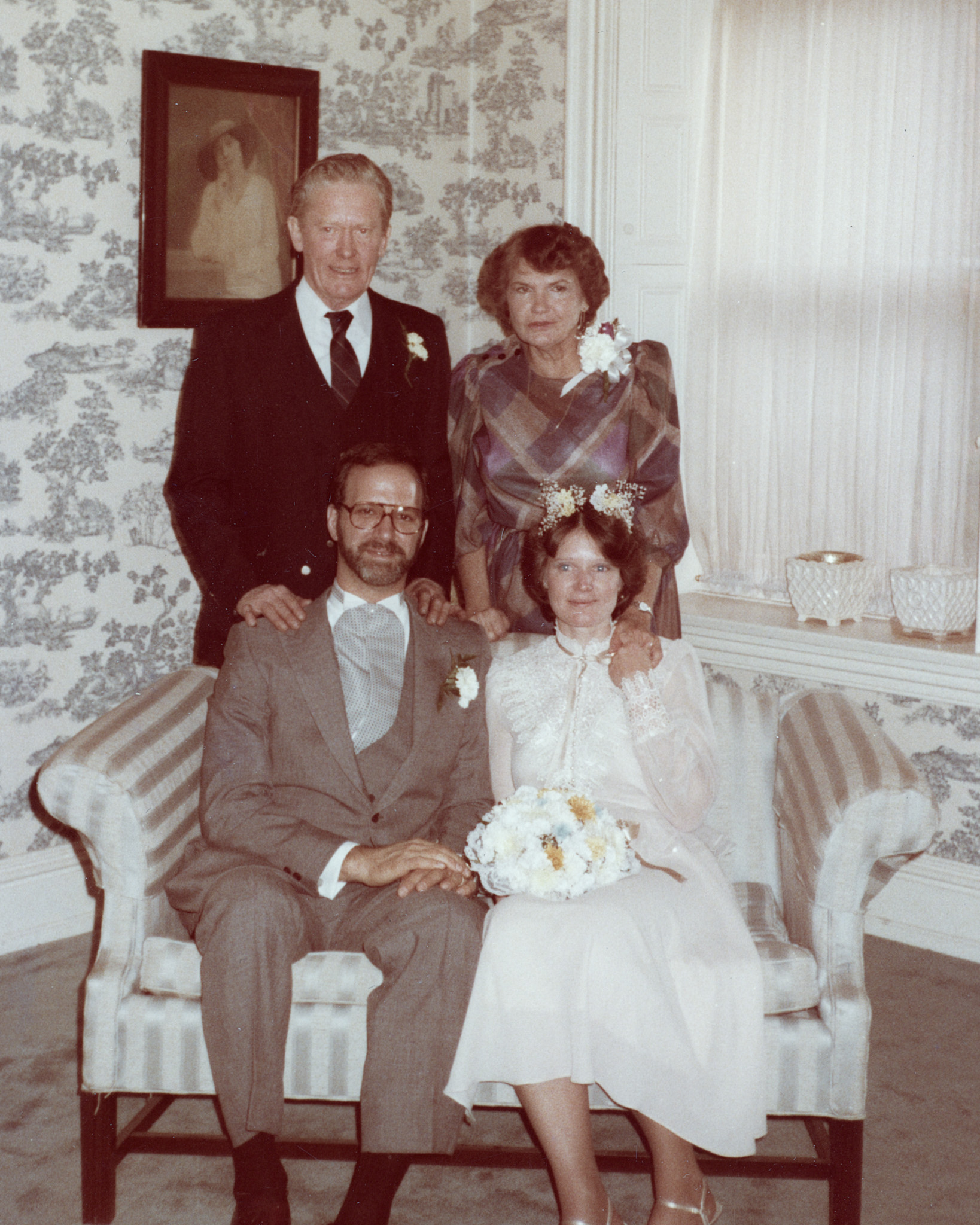 157 Original :: "Alan, Lea, Bif[?] & Mary Edwards". Alan and Lea's wedding, 10/22/1983.